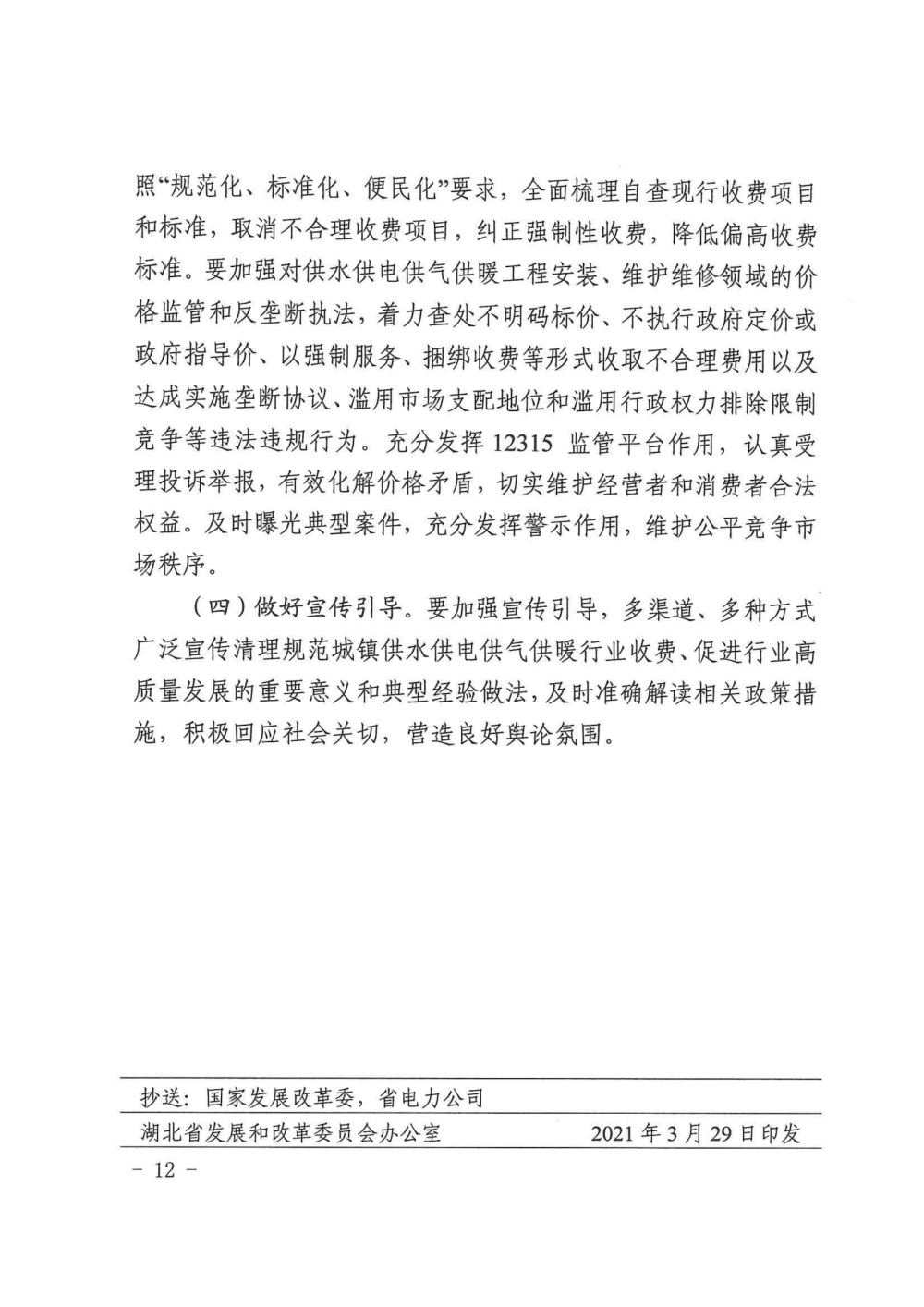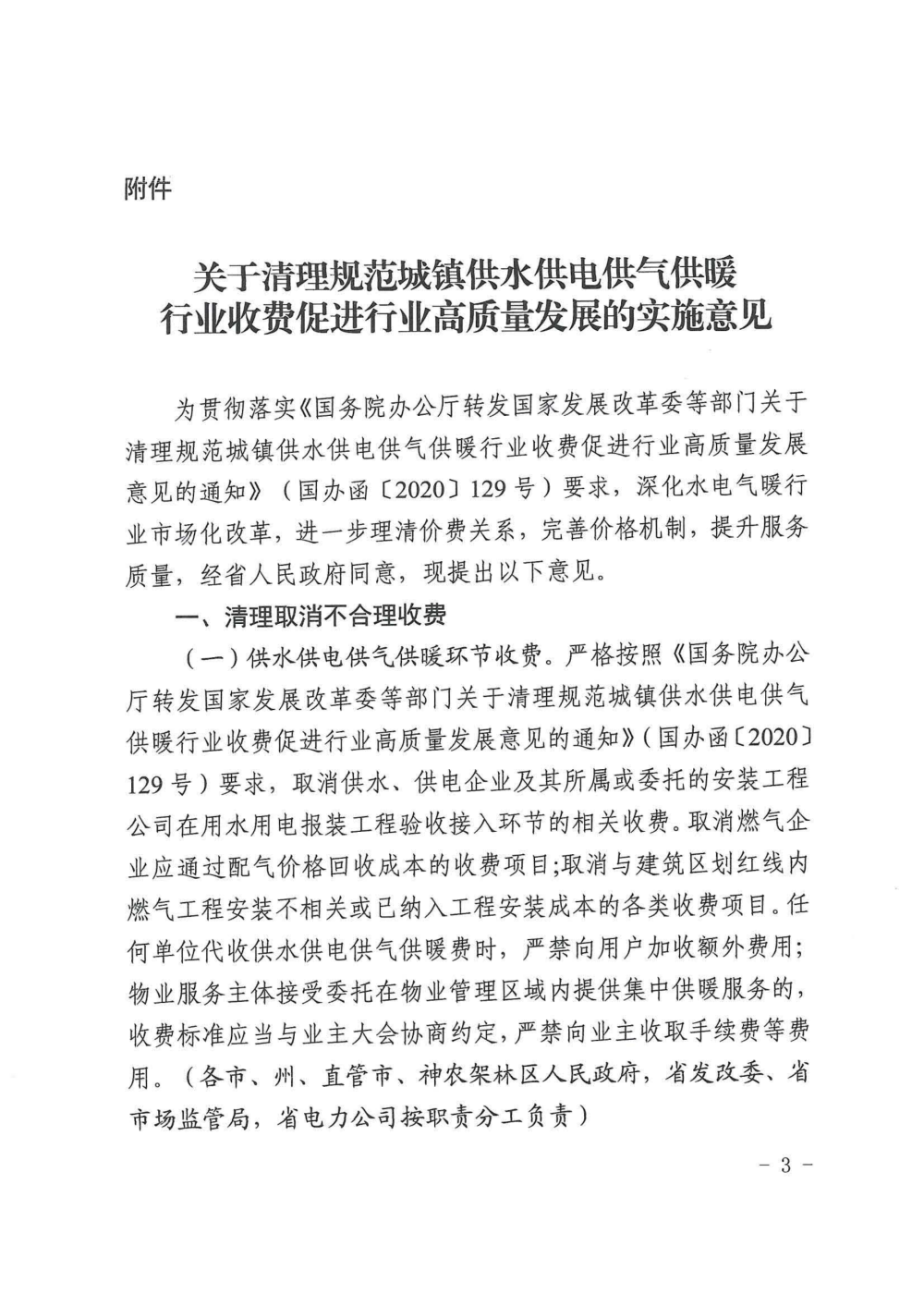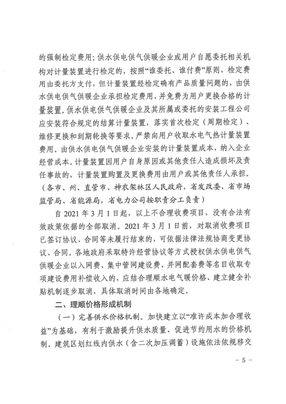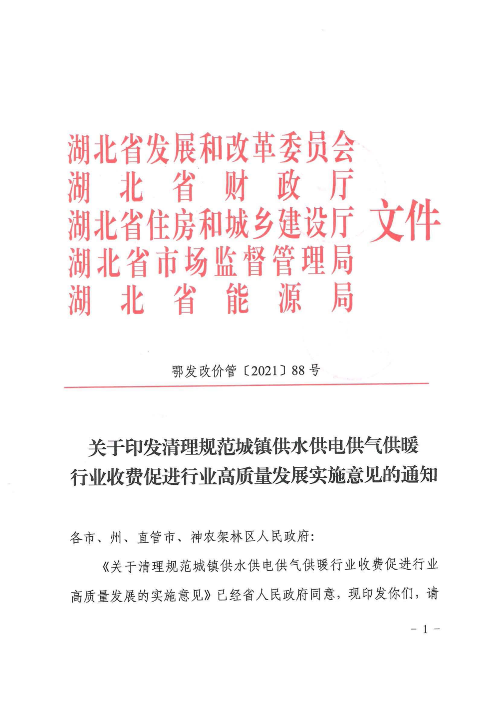 关于印发清理规范城镇供水供电供气供暖行业收费促进行业高质量发展实施意见的通知