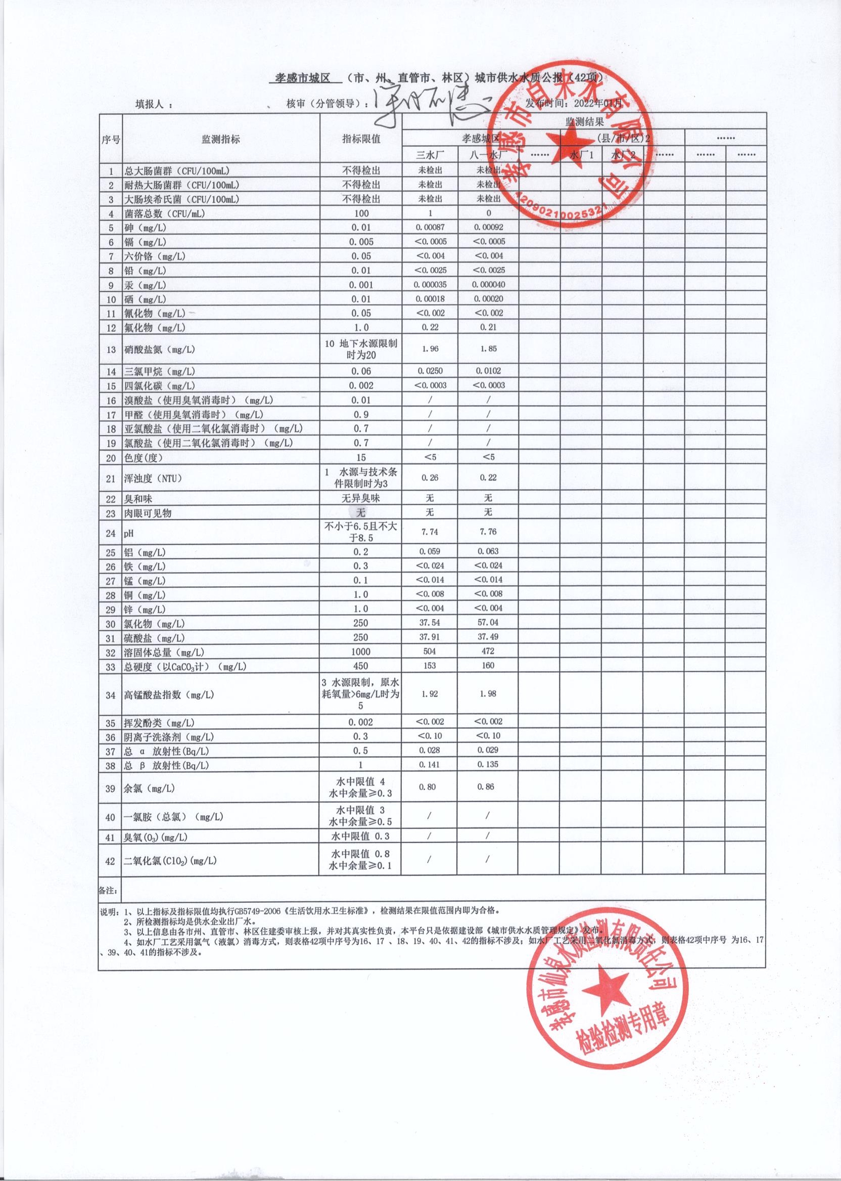 2022年1月水质报告