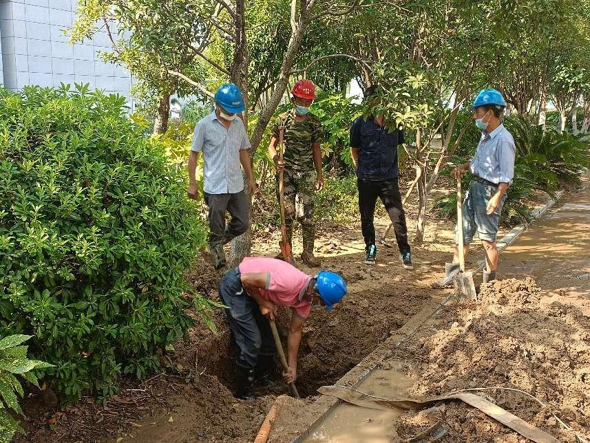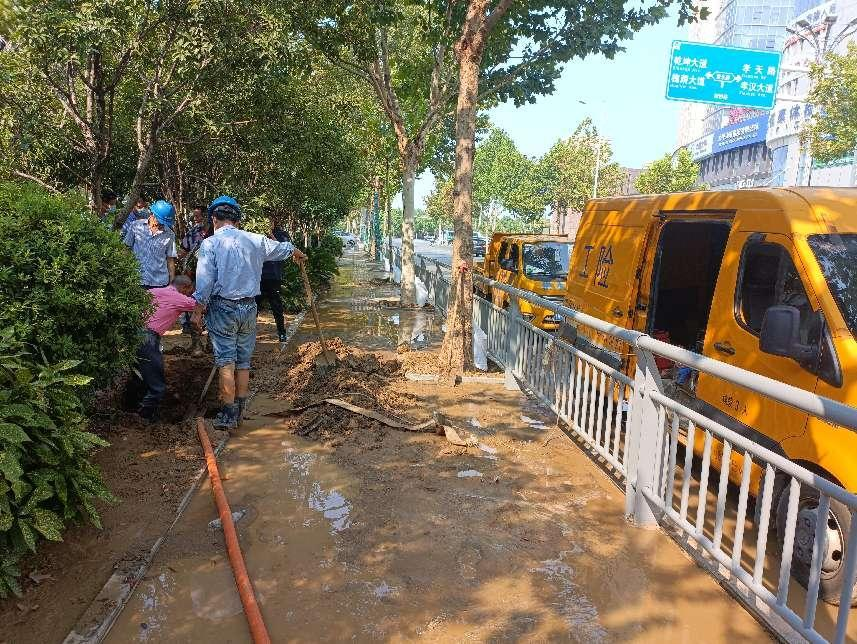 接到通知后,公司运维部抢修人员迅速赶往现场进行勘察,通过精准定位锁定了漏点,并制定了抢修方案。快速挖开路面,经排水、挖掘、清理后,抢修人员对此处破损的DN300供水管展开了抢修。他们采用“哈夫节”包接方式,将新旧管道接口成功连接。截至当天下午3时,经过7个小时持续不间断奋战,漏水供水管道抢修工作结束,经管压调试后恢复正常供水。
