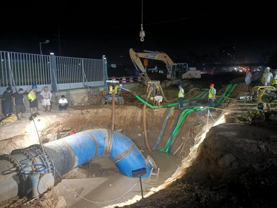 孝武大道、城南大道供水主管圆满完成碰接