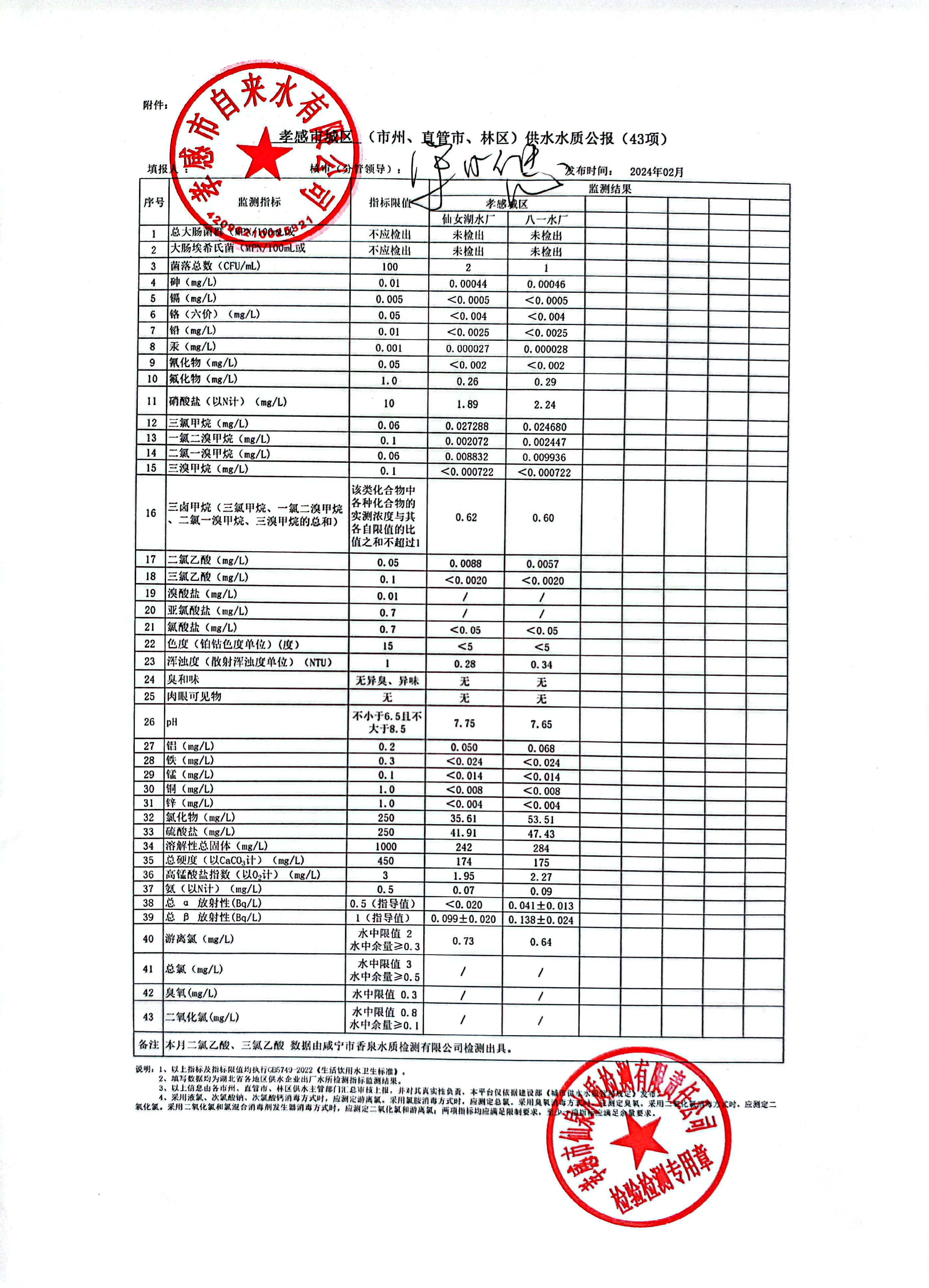 2024年2月水质报告
