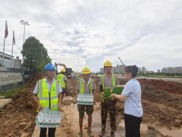 进入7月,酷暑难挡,为切实做好夏季防暑降温工作,维护职工身心健康,7月16日,公司组织开展“夏送清凉情系一线”慰问活动,上午9点,工会一行人前往施工一线送去绿茶、矿泉水等防暑降温物品,同时对员工进行了人文关怀。