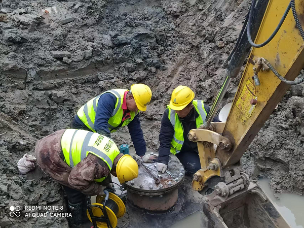 12月22日,位于澴河水面下的孝感城区向云梦供水的DN1200主管道突发爆管,云梦县城关和乡镇面临停水危机公司第一时间启动应急预案,克服漏点位于河道中央、气温低下、抢修条件恶劣等困难,在短短8个半小时内连续作业快速抢通,迅速恢复了云梦全域供水。