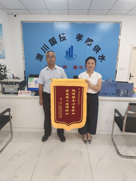 从“非责任范畴”到“主动担当”,从“快速响应”到 “全程守护”,自来水公司以实际行动践行“服务企业、优化营商环境”的承诺,也赢得了企业的高度认可。8月25日,国蒙(武汉)汽车科技有限公司工作人员专程来到自来水公司,将一面印有“热情服务心系企业,昼夜施工保障供水”的锦旗送到工作人员手中,既是对此次抢修服务的肯定,更是对自来水公司长期以来保障企业用水、助力区域营商环境提升的认可。