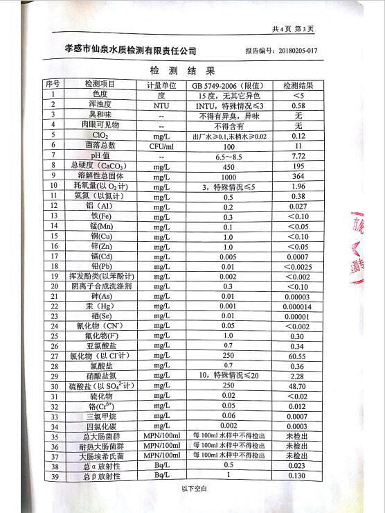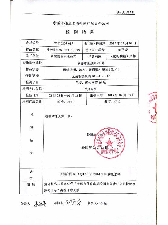 2018年2月水质报告
