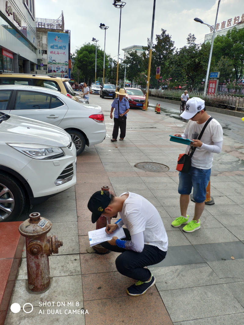 专项行动以城区人口商业集聚区为重点,依托城区供水管网地理信息系统管理平台,按供水管网主干管分布现状分片区依次进行。专班人员在第一天的行动检查中,在37摄氏度高温下顶着烈日炙烤,沿槐荫大道、环城路、解放街等3个路段进行了全线排查。排查工作结合消火栓的栓体完好情况和水量水压、阀门启闭等方面进行逐项检查、登记,并现场更新数据库信息。首日检查即发现有3具消火栓被人为破坏,存在安全隐患,专班人员随即通过移动终端向平台报备,维修中心迅速安排人员限时整改处置。排查中专班人员走一路汗一身,工作服湿了又干干了又湿,但大家干劲丝毫不减,相互笑称这才是一场真正的“大烤”。