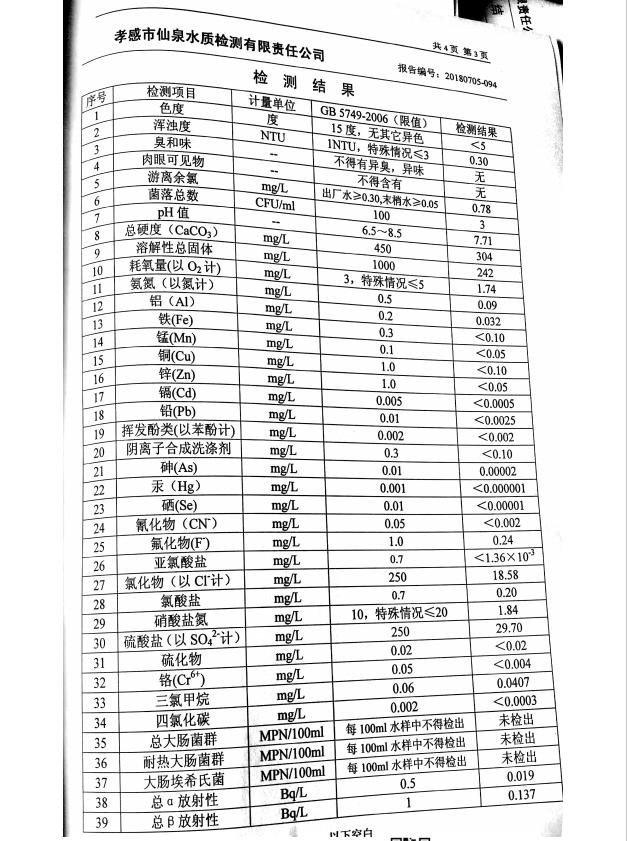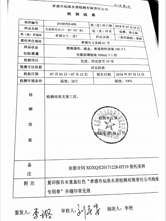 2018年7月水质报告