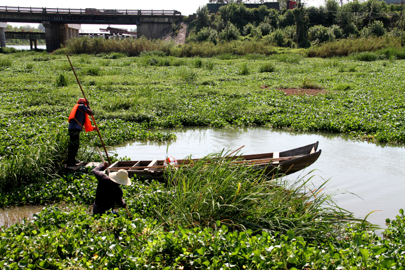 受下游桥梁施工截流及近期持续晴热天气影响,我市城区备用水源地沦河保护区内水葫芦大面积爆发,将整个水面“霸占”得严严实实,影响原水水质安全。为清除隐患保障沦河应急取水功能,在我公司高度关注和积极联系下,沦河河长办、孝南区朱湖办事处等部门迅速组织清剿队,自8月21日起与水葫芦展开“会战”。