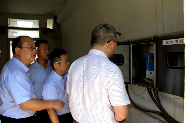 骄阳似火。督查组一行未作停歇,随即风尘仆仆赶往四十多公里外的汉川市新河镇,对汉江源水泵站取水头、沉井泵房、沉砂池等主要取水设施进行了实地检查,询问了水源保护区巡查保护工作情况,并详细了解记录了取水计量设施数据采集、上传等情况。