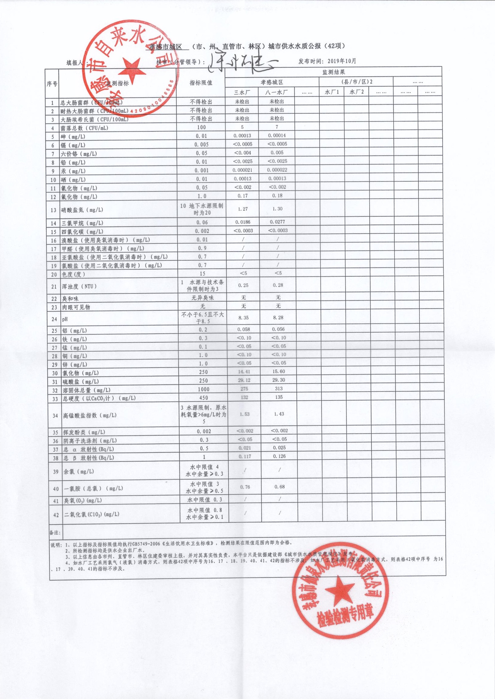 2019年10月水质报告