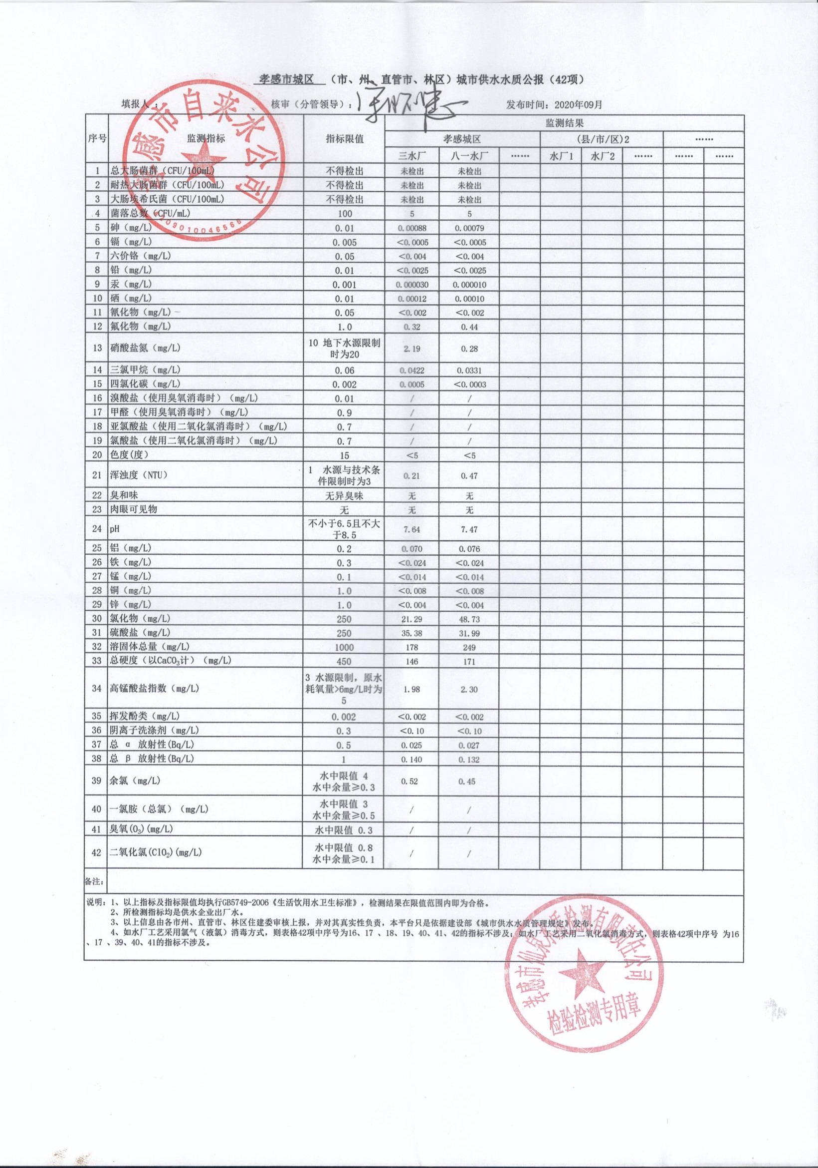 2020年9月水质报告